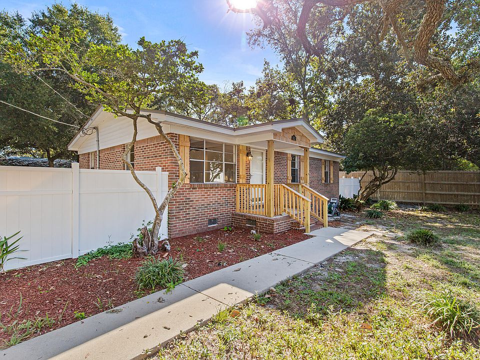 At time of listing, this is the only detached single-family home in Destin offered under $300K. Located on sidewalk-lined, speed-controlled Beach Dr, this property suits primary living or long-term rental use with no HOA and zoning that does not allow short-term rentals. 100x100 lot with mature oak and palm trees, fully fenced backyard, new oversized deck, paver patio area, irrigation system, metal roof, storage shed, and granite kitchen with custom bar seating. Oversized driveway allows boat, RV, camper, or work vehicle parking, a rare advantage in central Destin. Convenient to Mattie Kelly Park & Nature Walk, Joe's Bayou Boat Launch, Destin Elementary expansion, and minutes to the Harbor and Gulf beaches. Offers rental stability with value-add potential for future expansion. bar-height seating area in the kitchen.
