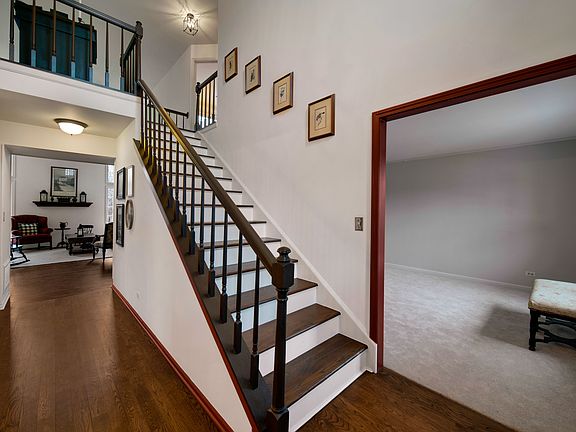 Welcome to this Devonshire two-story with many upgrades in the beautiful Braemar subdivision. This home has been lovingly maintained and features four spacious bedrooms, two full baths, and one half bath. In addition, there is a two-story foyer and family room, first floor office with a built-in desk and bookcases, and a walk-in pantry with a custom spice shelf. There is crown molding and upgraded millwork throughout most of the home. The finished basement includes a recreation room, workshop, and an additional room, perfect for hobbies or crafts. Enjoy the paver patio leading to the gazebo that overlooks the stunning backyard with underground electric fencing. From raised garden beds, to the firepit and custom playhouse, this cul-de-sac home is a piece of tranquility. Some of the many upgrades and updates include the Roof (2022), Furnace (2024), Central A/C (2019), Water Heater (2021), LeafFilter Gutter Guards, interior glass French doors, reverse osmosis to icemaker and sink, whole house fan, and an outdoor shed. Most of the windows have been replaced with top-of-the-line Gorell brand windows. The kitchen and baths have also been remodeled throughout the years. Braemar has its very own park, soccer and baseball fields, nearby shopping, and restaurants. Don't miss the opportunity to make this home yours!!!