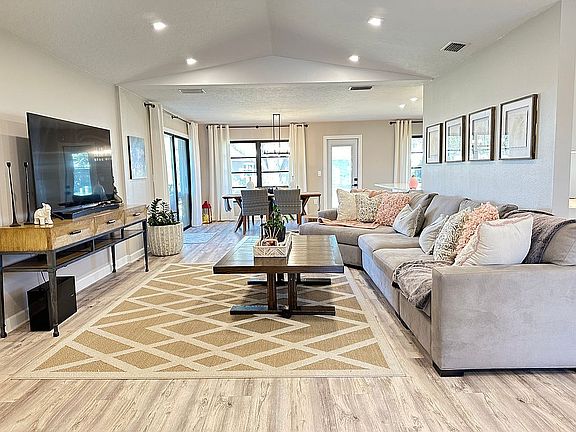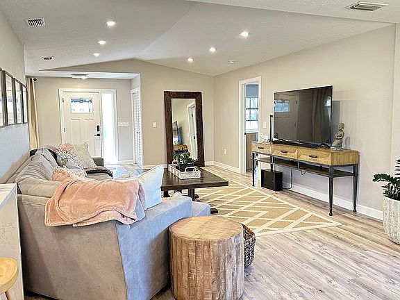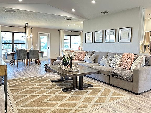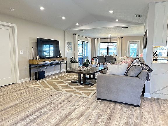 Newer free-standing villa w/ 3 Bedrooms and 2 Bathrooms, waterproof wooden floors in entire house. Garage, circle driveway. Interior remodeled in 2023. AC replace 2003. water heater 2023. Open concept kitchen connected with living room and dining, all new appliances, vaulted ceiling, well for irrigation, much storage. Pets welcome. Low-traffic Street. Clean and neat with an open floor plan. HOA $539 monthly including professional landscaping service and Home Insurance !!! including roof. Florida lifestyle at its best as sliding glass doors gracefully pocket, revealing a screened-in lanai, perfect for savoring your morning coffee. Additionally, a front screened-in porch enhances the curb appeal and versatility of this extraordinary home. Conveniently located just minutes from restaurants, shopping, and the exquisite Gulf Beaches, seize this rare opportunity to transform this Sorrento East villa into your own haven of comfort and style. Walking distance to Oscar Scherer Park with Entrance to Legacy Bike Trail !