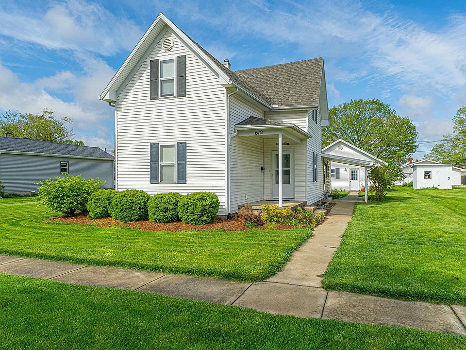 Updated 3 Bedroom 2 full bath home with a 2-car detached garage. This home at 612 Decatur is situated on a double lot. Exterior of this home has quality updates including vinyl siding, replacement windows newer architectural roof, 2 car detached garage, storage shed constructed of concrete block for all your storage needs, extra shed is (approx. 12x12) On the updated interior you will find a nice sized eat in kitchen with an island, ceramic tile flooring, refrigerator, stove and dishwasher to remain. Main floor also features the master bedroom, living room, laundry room, a quaint sized office area and a full bathroom. On the second floor is the second full bathroom and 2 bedrooms. 612 Decatur is a move in ready must-see home!!