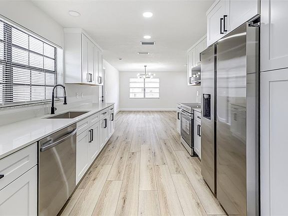 One or more photo(s) has been virtually staged. Welcome to this stunning 3-bedroom, 2-bath single-family home with a sparkling private pool, perfect for Florida living. Fully remodeled, this residence blends timeless charm with modern comfort. Step inside to find a bright floor plan featuring stylish finishes, updated flooring, and a beautifully renovated kitchen with quartz countertops, modern cabinetry, and stainless-steel appliances. The spacious living and dining areas flow seamlessly to the screened fiberglass pool featuring new pump and filter. Ideal patio for entertaining or relaxing outdoors. Enjoy peace of mind with major updates already done: Roof (2016), AC (2014) and a brand-new water heater (2025). The home also includes a 2-car garage, ample storage, perfectly located near top schools, shopping, and dining this move-in-ready home offers the best of comfort, style, and convenience.