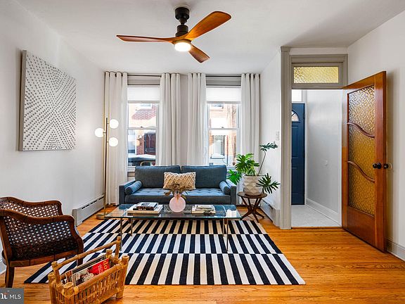 Welcome to 612 Gerritt St, a newly renovated 1,081 square foot 2 bedroom 1.5 bath home on a thriving block in Passyunk Square. Renovations recently completed in 2023, this home offers a unique mixture of original charm and modern amenities. Enter the home through the original vestibule featuring classic trim and textured glass door and transom window. Step into the 13 foot wide living and dining rooms filled with natural light and newly refinished original hardwood floors. Head towards the rear through the dining area into the spacious eat-in galley kitchen with shaker cabinets, modern hex porcelain tiles, mosaic mini subway tile backsplash and stainless steel appliances including built-in microwave, dishwasher and garbage disposal. Storage space and surface/prep areas are plentiful with both quartz and butcher block countertops, floor to ceiling pantry cabinet and a breakfast nook including under-seat storage chests. This home also offers the convenience of a remodeled half bath located on the first floor off of the dining room. The fully enclosed private rear patio has plenty of comfortable outdoor entertaining space with room for a grill, full sized table and chairs and a raised garden bed. Head upstairs to the bedrooms and notice the unique double pocket doors on the 2nd bedroom, offering a brighter and more open/flexible use of an otherwise commonly cramped space. The front bedroom offers an extra wide double bifold closet with built in closet system and ample space for a king or queen bed. Like the living room downstairs, both bedrooms are equipped with a remote-controlled contemporary wooden ceiling fan as well as ductless mini split air conditioning wall units. In addition to air conditioning, these efficient individually remote-controlled units are also heat pumps, offering a 2nd heat option in the colder months. The main bathroom on the hall is also newly remodeled, with hex porcelain tile flooring, subway tile soaking tub/shower with marble shelf and marble vanity sink. There’s plenty of (clean and dry!) storage or workspace in the newly painted basement with utility sink, new lighting fixtures and matching Maytag washer and dryer set. The home has two heating options, either by forced air heat with the mini split wall units, or if you prefer radiators/radiant heat, the boiler furnace is also controlled by an Emerson Sensi wifi/app enabled programmable thermostat. Take advantage of this opportunity to own a charming home in a still growing section of South Philadelphia/Dickinson Narrows. From the end of your street at 7th st, it's just a short 3 block walk (0.3 miles) to all of the shopping and restaurants on Passyunk Ave. Schedule your tour today! Owner is a licensed PA Real Estate Agent. 1,081 square feet (source: Nov 2015 lender's appraisal).