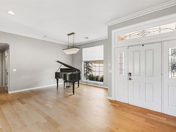 Split floor plan with 4 bedrooms/study or 5 bedrooms. Primary suite, guest bedroom and study on one side plus 2 additional bedrooms on the other. Primary bath with separate shower, tub and walk in closet with 2 more closets in bedroom. Kitchen features Stainless appliances including double oven & microwave, granite counter tops, center island, and breakfast bar. Two dining areas with the informal dining overlooking backyard and pool. Two living areas, main living area with back yard view and the larger one with fireplace in the back. Two sets of french doors and floor to ceiling arched windows provide a great view to the outdoor living space. Back yard covered patio with two additional seating areas, with a patio from master and large in-ground pool with seating, diving board and childproof fence. All that and still lots of green space. Large utility room with sink, built-in cabinetry and huge pantry in addition to all the storage options in the kitchen. In 2025 hardwood floors were installed, kitchen updated, AC unit and hot water heater on east side of house replaced, lighting and landscaping updated and pool remodeled. In 2024 AC and hot water heater replaced on west side of house. Extensive home security system with cameras, motion sensors, fire alarm etc., installed and account is transferrable.