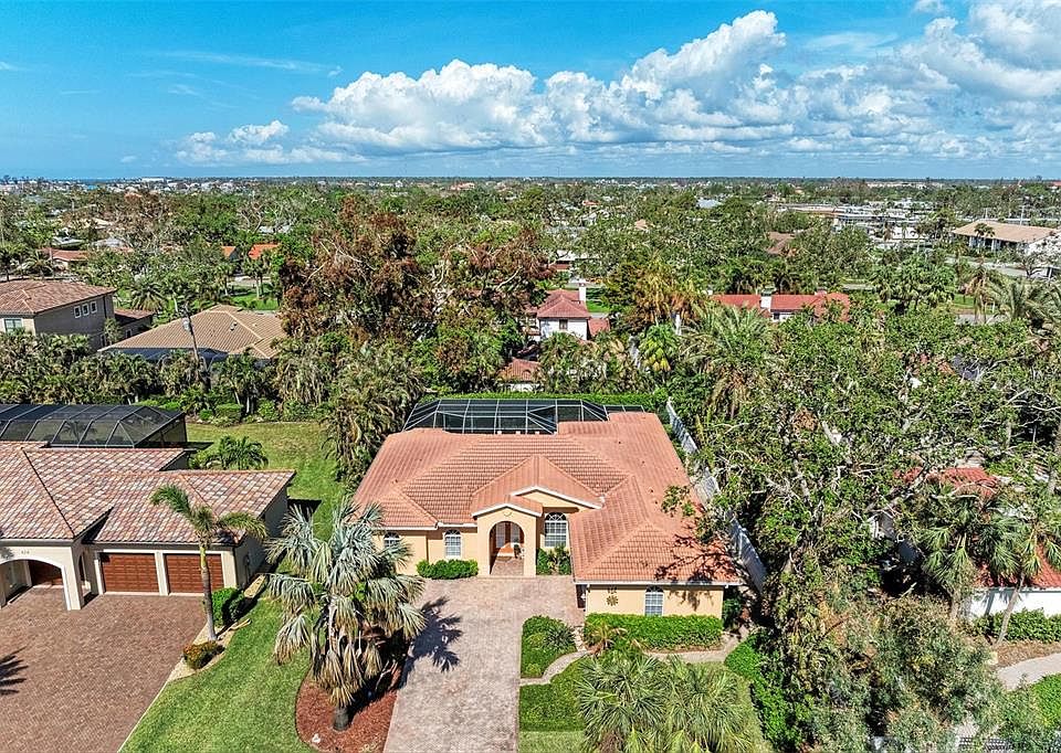 Imagine starting each morning just two blocks from the sparkling Gulf of Mexico, where gentle sea breezes carry the promise of another perfect day in paradise. Built in 2003, this elegant Venice Island retreat beckons you to live the coastal lifestyle you've been dreaming of, where evening strolls to catch breathtaking sunsets become your daily ritual. Step through the front door, and you'll immediately feel the stress melt away as 10- and 12-foot ceilings soar overhead, creating an atmosphere of peaceful luxury. Natural light streams through the windows of this nearly 3,500-square-foot sanctuary, where the open, airy design flows effortlessly from one space to the next. Picture yourself starting each morning with coffee on your covered lanai, surrounded by mature landscaping that creates your own personal oasis on this generous quarter-acre lot. The newly resurfaced heated saltwater pool and spa, finished in premium pebble-tech, offer year-round relaxation – perhaps a midnight dip under the stars or a refreshing afternoon swim. The soft-step rubberized lanai and pool deck add both comfort and sophistication to your outdoor retreat, complete with a convenient outdoor shower and additional pool storage. The thoughtfully designed split floor plan offers three bedrooms plus an office, creating space for everyone to find their own sanctuary. The expansive master suite serves as your private haven, while two additional bedrooms and three full bathrooms ensure comfort and convenience for all.When the mood strikes, wander into downtown where local cafes, boutique shopping, and cultural attractions await. Spend Saturday mornings at the farmers' market, enjoy evening concerts in the park, or join friends for tennis and pickleball – all just three blocks from your front door.Nestled among prestigious estate properties, you'll enjoy a level of privacy rarely found in newer communities while maintaining proximity to everything that makes Venice Island special. This is more than just a home – it's your gateway to the laid-back luxury of Florida coastal living, perfect as either a vacation retreat or your year-round piece of paradise.Welcome home to Venice Island, where every day feels like vacation.