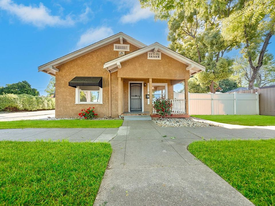 Welcome to this charming move-in ready starter home, nestled in the heart of Lodi! Boasting 2 bedrooms and 1 full bathroom, this residence welcomes an abundance of natural light throughout, creating a warm and inviting ambiance. Step outside to the front covered porch area, ideal for relaxing and enjoying the outdoors. Inside, the home has been freshly painted, with new carpet, light fixtures, and kitchen appliances adding a touch of modernity. A one-car detached garage provides convenient parking and storage options, while the backyard offers a cement patio, perfect for outdoor gatherings and leisure. Conveniently located near easy freeway access, restaurants, parks, schools, Lodi Lake, and the renowned Lodi wine country, this home offers the ideal blend of comfort and accessibility for a vibrant Lodi lifestyle!