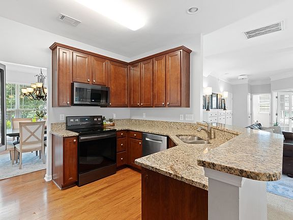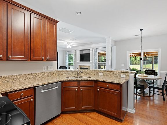 Beautiful 4 bedroom 2.5 bath open floor plan in a quiet cul-de-sac of Lismore Village. The main level features 9ft ceilings, a dining room, family living room with fireplace, sunroom/office, breakfast room and kitchen. Kitchen has granite countertops, stainless appliances and a pantry closet. Screened porch off of the kitchen with a slanted wood ceiling and tile floor open to the private fenced backyard (backs up to woods for added privacy!). Master on 2nd has a tray ceiling. Master bath has a garden tub, separate shower, walk-in closet. Master is open to 4th bedroom with french doors and closet that could be a perfect nursery, office or sitting room. Two other good sized rooms, laundry room, & 2nd full bath complete the upstairs. Zoned for fantastic Riverside schools, a county park, and close proximity to the interstate.