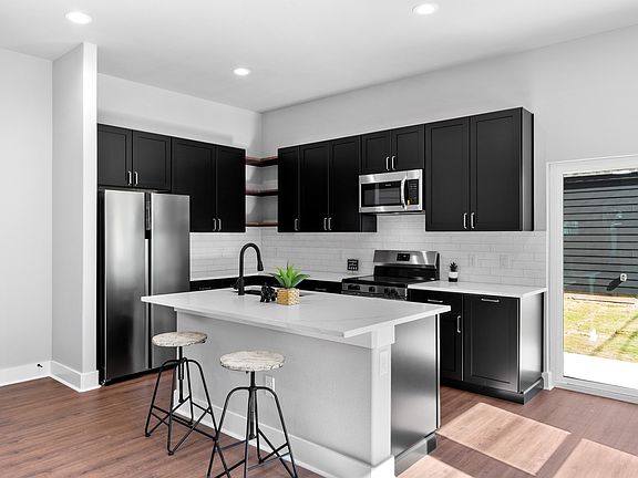 There are three of these homes available on N Robinson Street, each featuring the same modern layout and finishes. The white home is staged to help you picture how easily the space adapts to your lifestyle.