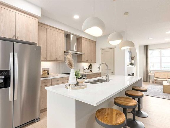 IT’S AMAZING HOW DIFFERENT A HOME FEELS WHEN YOU’RE NOT LOOKING AT SOMEONE ELSE’S GARAGE—this Finley in Sora gives you a FRONT-ROW VIEW OF THE POND instead. And behind that view? 1,427 square feet of bright, functional space built for both family life and future potential. Step inside and you’ll find 9’ CEILINGS on the main floor, open living and dining areas, and a kitchen that gets all the details right: 42” UPPER CABINETS, QUARTZ COUNTERTOPS, a CHIMNEY HOOD FAN, BUILT-IN MICROWAVE, UPGRADED SILGRANIT SINk, and a GAS LINE ROUGHED-IN if you’d rather cook on flame. Upstairs, three bedrooms and a convenient laundry room keep family life functional without sacrificing style, with quartz counters carried through every bathroom. But it’s what’s behind the walls and under the floorboards that really sets this property apart. Homes by Avi thought ahead with 9’ FOUNDATION WALLS, a SIDE ENTRY, and FULL BASEMENT ROUGH-INS for a bathroom, laundry, and wet bar or kitchenette. Add in an upgraded 80-GALLON HOT WATER TANK (finally, showers for everyone), a 200amp electrical panel, and you’ve got a home that’s as future-proof as it gets—whether you’re an investor eyeing a potential basement apartment, or a family that likes the idea of options down the road. Outside, the upgrades continue. A 10’ x 8’8” rear deck comes with a BBQ gas line already roughed-in, the front yard sod will soon be in place, and a 20’X20’ CONCRETE PARKING PAD out back is ready for vehicles now—or a garage later. In other words, move-in ready without the weekend trips to the hardware store. And then there’s the community. SORA IS ONE OF SOUTHEAST CALGARY’S MOST EXCITING NEW NEIGHBOURHOODS, designed around wide boulevards, wetlands, and connected pathways that make it easy to get outside. Schools, playgrounds, and shops are on the way, while QUICK ACCESS TO STONEY TRAIL puts the rest of the city within reach. For families, that means a fresh start in a neighbourhood built to grow with you. For investors, it means early entry into a community with momentum. Brand new, never lived in, and built with upgrades that actually matter—this is the kind of listing that doesn’t stick around. Book your showing and see why Sora is already on so many buyers’ radar. • PLEASE NOTE: Photos are of a finished Showhome of the same model – fit and finish may differ on finished spec home. Interior selections and floorplans shown in photos.