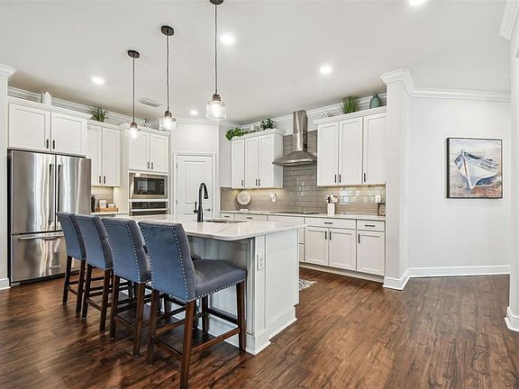 Positioned just steps from the clubhouse and pool, and set on a prime pond-view lot in Ozona Village, this 3-bedroom, 3-bathroom townhome offers a rare combination of thoughtful upgrades, pristine condition, and low-maintenance living in one of Palm Harbor’s most walkable coastal communities. Built in 2019 and carefully maintained ever since, the home offers over 2,300 square feet of living space with an intuitive layout and tasteful finish selections throughout. Rich dark laminate flooring anchors the main living areas, while upgraded carpeting with plush padding brings comfort to the bedrooms. The kitchen is both elegant and efficient—featuring an extended counter-height island with elegant Carrera quartz, soft-close cabinetry, a built-in oven and microwave, wine fridge, cooktop with range hood, and a striking glass backsplash. The main floor includes a private bedroom and full bath, ideal for guests or multi-generational living. Upstairs, a versatile loft space serves as a dedicated work zone or study nook. The primary suite is a standout, with tray ceilings, a custom walk-in closet, and a serene pond view. Closets throughout the home include smart storage systems, and the upgraded staircase adds a subtle architectural accent. Step outside to the extended lanai—clean lines, a tranquil water view, and ample green space create an easy backdrop for morning coffee or evening conversation. Behind the scenes, this home is equally well cared for: pavers are professionally cleaned, sealed, and sanded yearly; the HVAC system is serviced annually and now includes a HALO UV purification system (2025); and fresh interior paint (ceilings and main floor, 2025) ensures a turnkey experience for the next owner. Flood insurance isn’t required (X zone), and the property has remained unaffected by recent storms. Located within one of the top-rated school zones in the state and just minutes from the coast, the home also sits in the heart of Ozona’s vibrant golf cart district—where marinas, live music, and the Pinellas Trail are all part of daily life. For those seeking a low-maintenance home without compromise, 612 Ozona Village Dr delivers on every level.