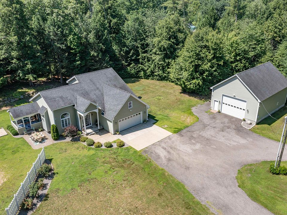 Welcome to your dream home nestled on 7 acres of serene countryside. This modern 3-bedroom, 2.5 bathroom Contemporary Cape residence boasts a unique blend of contemporary design and natural beauty. Enjoy the luxury of a spacious first-floor primary bedroom, providing convenience and privacy. Immerse yourself in the tranquility of a stunning bathroom featuring a custom shower and a luxurious soaking tub. Two more bedrooms and a full bathroom on the second floor. Open-concept living area with abundant natural light. Enjoy a cozy fireplace for those chilly nights. The kitchen is beautifully equipped with SS appliances, granite countertops, and custom cabinetry. Attached two car garage for direct entry into the house. Need more garage space? Well a 30x50 heated detached garage is ready for house vehicles, be storage or offer workshop activities. This home also offers an efficient and eco-friendly geothermal heating system ensuring comfort year-round while minimizing environmental impact. This meticulously maintained home offers the perfect blend of luxury, comfort, and sustainability. Don't miss the opportunity to make this exceptional property your own. Schedule your private showing today!