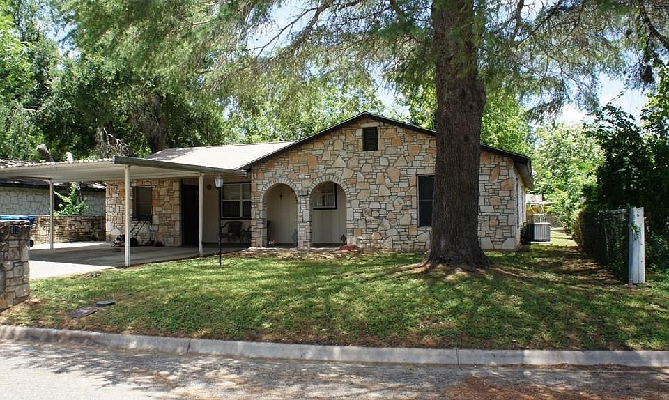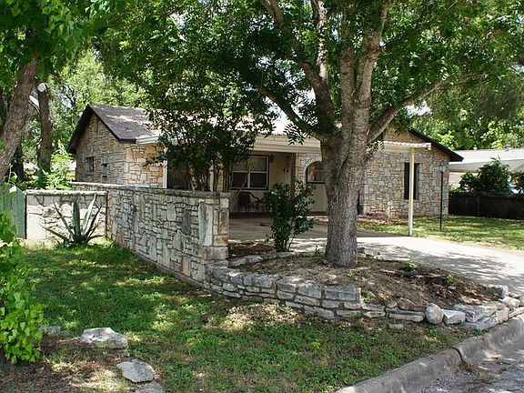 Nice Rock home, 3 bedroom, 2 bath only one block distance to Guadalupe River Trail. Home has some updates and priced for your options to update areas to make it your own. Large family room being used for large dining table now, but could be great family or game room. Back porch and yard have shade trees and BBQ fun waiting for you. Both bathrooms have walk in showers. Don't miss out on this priced to own and make your own. Large Lebanese Pine Tree in front is very inviting as it towers high and shades the front of home with areas for flower beds and more areas in back. Dead end street offers low traffic and near by shopping. Priced at a low $155. per square foot to allow for your updating. We know it has pink tile...retro is highly sought for these days.