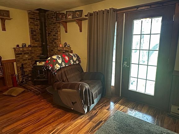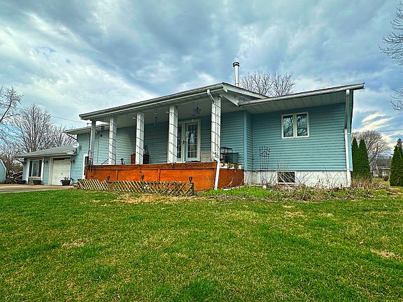 Tucked away in the quaint town of Long Point, this 3 bedroom, 2 bathroom ranch home sits on an almost 1 acre corner lot and offers a 2 car attached garage, a 1 car detached garage, and 2 additional sheds. The spacious covered front porch with appealing French doors welcomes you into the living room, highlighted by a cozy wood-burning stove. The generously sized kitchen provides an abundance of cabinets, dining space, and all appliances included. Each bedroom offers desirable closet space, with 2 of the 3 bedrooms featuring double closets. Both full main-level bathrooms have been updated and include walk-in showers. For added convenience, the home features main-level laundry and a mudroom between the attached garage and the house. The attached garage also features a wood-burning stove and has been outfitted as the perfect hangout spot, while still leaving room to park. The full basement and additional outbuildings offer plenty of storage, and the 1 car garage comes with a workbench. Experience small town living with big amenities in this charming home!