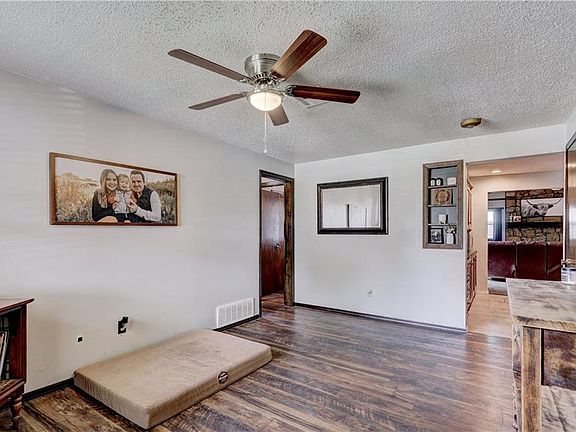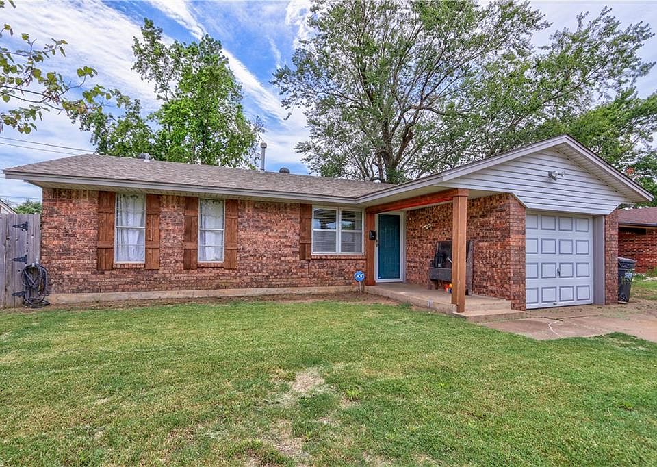Stunning remodel on this charming home located in the popular Moore school district. All new flooring with wood look laminate in most rooms, new carpet in the 2nd living and new tile in kitchen and baths. All new paint and newer, vinyl siding on the exterior. BRAND NEW HVAC (July 2018) with a 20 year transferable warranty, storm shelter, updated stove and dishwasher. Large, 12 by 16 steel construction storage building in the backyard with built in shelves for extra storage, still plenty of backyard to enjoy! New doors at every entrance into the home. Lots of cabinet space in the kitchen, extra living/den for more space. Closets throughout. New windows in extra living room and bathroom.Beautiful wood burning fireplace with a fan for coziness in the den! This home is conveniently located to shopping, restaurants, Moore Warren Theater, hospitals, interstates, school, and an INCREDIBLE newer park and splash pad!