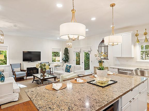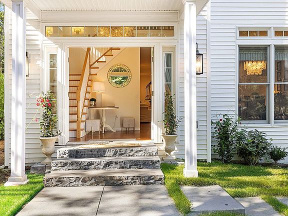 Additional amenities include a large soaker tub, oversized farmhouse sink, oversized marble kitchen island, bespoke wall coverings, Oversized windows with transoms, stunning one of a kind lighting fixtures throughout, a oversized landing on the second floor and a separate exterior glass double door entry to the 1450 sq foot basement, which