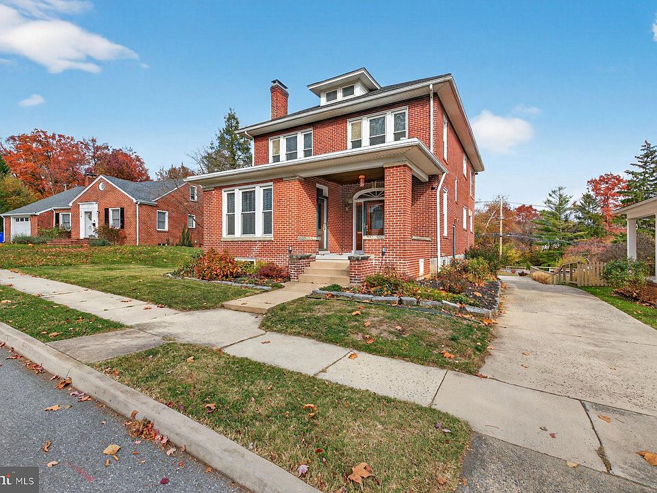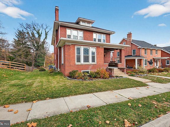 Welcome to this gorgeous brick colonial that perfectly combines timeless charm with modern updates — ideally situated directly across from beautiful City Park! With approximately 4,000 square feet of space, this spacious home offers 4 bedrooms, 2.5 bathrooms, and an abundance of character and flexibility. The main level features hardwood floors, beautiful wood trim, and custom built-ins throughout. A large family room with a wood-burning fireplace and elegant mantel opens to the formal dining room and adjoining sitting area. The generous kitchen provides excellent cabinet and counter space, ideal for cooking and entertaining. A main-level bedroom or den offers versatility — and the front room with its own private entrance is perfect for a home office, studio, or client-facing business setup. Upstairs, you’ll find three bedrooms, a full bathroom, and a spacious family room with stunning views overlooking City Park. With a full kitchen on both the main and upper levels (appliances convey), this home can easily function as a single residence or be converted into two separate units. Additional highlights include double-pane replacement windows, dual-zoned electric heating and cooling (one system replaced 2024), and a water heater replaced in 2020. The walk-up floored attic provides excellent storage or potential for future finished space. Relax outdoors on the covered front porch or raised rear deck. The full, walk-out basement includes a built-in garage, laundry area, and half bath. A long driveway offers plenty of off-street parking. Conveniently located near I-70, I-81, shopping, restaurants, and schools — this beautifully maintained home is move-in ready and full of opportunity!