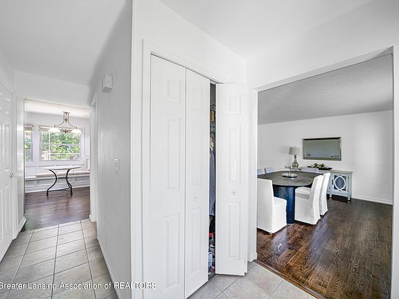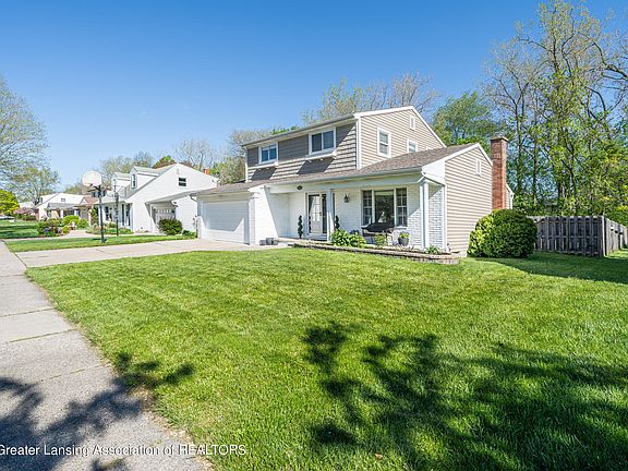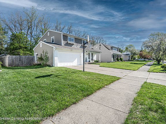 Welcome to your immaculate oasis at this stunning 3-bedroom, 2.5-bathroom home nestled in the highly coveted Tamarisk subdivision. Just minutes away from Meijer, Eastwood Town Center, downtown East Lansing, and MSU, this home boasts numerous updates, including refinished hardwood floors, fresh paint, crown molding baseboards, trim, and modern touch switches, ensuring both elegance and functionality. Create cherished moments in the spacious living room, seamlessly connected to the dining room, ideal for hosting gatherings and celebrations. The well-appointed kitchen features new stainless steel appliances, ample cabinet space, recessed lighting, and a charming built-in breakfast nook, adding a touch of simplicity to your culinary adventures. Completing the main level is a convenient half bathroom for guests' comfort. Upstairs, retreat to the expansive primary bedroom, boasting double closets and a full bathroom with double vanities, along with two more sizable bedrooms for restful nights. Venture downstairs to the fully finished basement, where a hidden door leads to the laundry room equipped with a washer and dryer, ample storage space, and an egress window. The basement's main area offers versatility, serving as a perfect rec room or second living space for gathering with loved ones. Step outside to the fully fenced yard, where you can unwind in the hot tub, gather around the fire pit, or relax on the deck, creating cherished memories amidst the serene outdoors. Embrace the feeling of home, schedule your showing today!