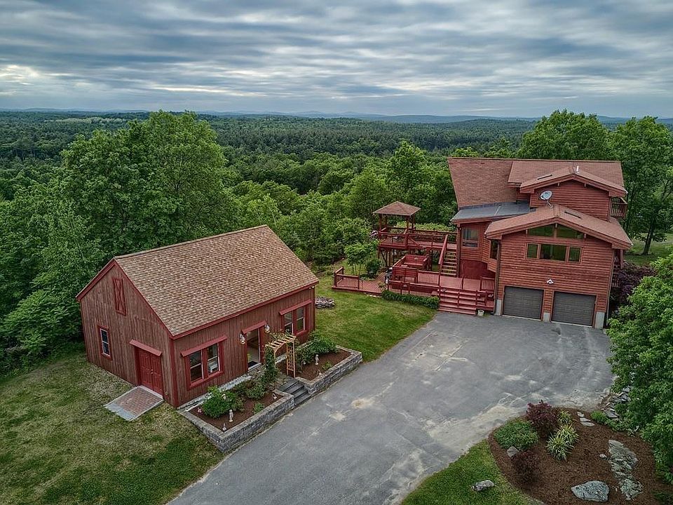 **Views** Panoramic, Breath Taking, Peaceful, Serenity and Natural beauty abounds 14 acres of seclusion and private sanctuary. Post and Beam Contemporary style home hidden from the road, sitting high on a hill, nestled and secluded retreat is designed for indoor-outdoor living. Spectacular and magnificent Sunset can be seen by sitting on the extensive multi-level deck or through the walls of glass that was designed to capture the vistas, Incredible! Soaring beamed ceilings, free flowing flr plan, gleaming wood flrs, flooded with natural light and window positioning designed to totally capitalize the beautiful landscaping and majestic views. Master Bedroom - private balcony with a garden view and the sounds of the bubbling fountain along with a wall of windows overlooking the views you dream about. Enjoy quiet time on the Patio covered with grapevine arbor. 29 x 23 Separate Post and Beam building heated, electric and full bath could be potential in-law, guest house, artist studio.
