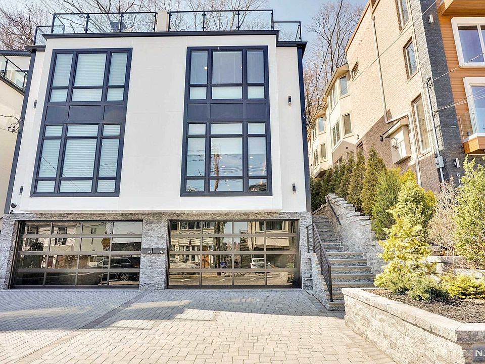 NEWLY CONSTRUCTED LUXURY DUPLEX. OVERSIZED LOT IN EDGEWATER, NJ. WITH NYC SKYLINE AND HUDSON RIVER VIEWS. APPROX. 4000 SQFT, 4 LEVELS, 10FT CEILINGS, PRIVATE ELEVATOR, 4 BEDROOMS, 4.5 BATHS AND MAGNIFICENT ROOF DECK WITH NYC VIEWS. THIS IMPRESSIVE DUPLEX ENCOMPASS A CONTEMPORARY DESIGNED EXTERIOR STONE AND STUCCO FACADE, GLASS GARAGE DOORS HOUSING 2 CARS, TESLA CHARGING STATION AND BLACK ACCENTED METAL PANEL ANDERSON WINDOWS THROUGHOUT. WRAP AROUND KITCHEN WITH PROFESSIONAL GRADE APPLIANCES AND 8 FT CENTER ISLAND. BEAUTIFUL COVE LIGHTING CAN BE FOUND IN THE FIRST FLOOR LIVING ROOM WITH A FLOOR TO CELING TILED BOULEVARD LINEAR FIREPLACE, DINING ROOM, POWDER ROOM AND OVERSIZED KITCHEN. 2ND FLOOR HAS PRIMARY BEDROOM AND BATHROOM, 2 ADDITIONAL BEDROOMS AND 1 BATH. TOP FLOOR HAS ENTERTAINMENT ROOM, WET BAR, ROOF DECK, 4TH BEDROOM W/SKYLIGHTS & FULL BATH. THE WHOLE HOUSE IS WIRED WITH ETHERNET CAT7 CABLE.