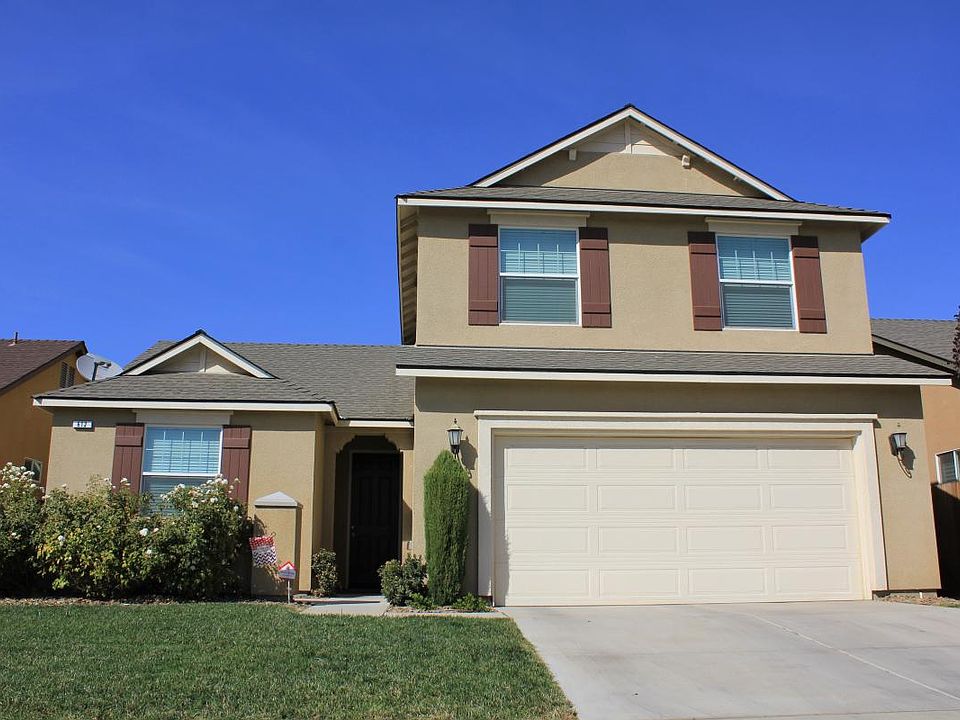 *New Price* This 4 bedroom 3 bath energy efficient home was built in 2013 in Lemoore, CA. The house features an open concept floor plan and spacious living area with a downstairs office/bedroom. Ceramic tile entry, dining and kitchen with granite counter tops, modern appliances, large island and plenty of cabinet space. Carpeted living room with large and energy saving "hybrid" windows lighting the open space. An upstairs master suite with jacuzzi tub, dual sink vanity and walk in closet. This beautiful and functional two story house provides a variety of storage space with full size closets, walk in storage closet under the stairs, and cabinets in the up stairs laundry room with hook ups readily available. Fully landscaped in front and back with automated sprinkler system and yard service included in rent. Contact us and apply now to rent this beautiful home!