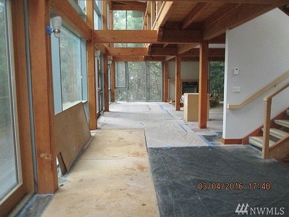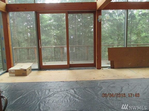 Discover Bay View: Unique opportunity to live in the 916sq foot ADU while you finish this beautifully started Pacific N.W. Home. The main home has a full wall of window facing Discovery Bay and the Olympic Mts. This view will be improved as the trees are thinned. There is hardwood flooring in the kitchen and living area. The upper floor has a master bedroom and private bath along with 2 additional bedroom. The main level is living room, dining area, kitchen and large den.