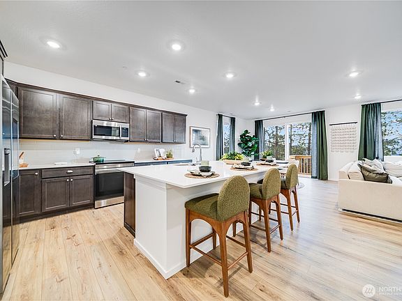 Kitchen with large islandBig walk-in closetExtra vanityWide counter topsLiving and dining areasOpen-concept layout