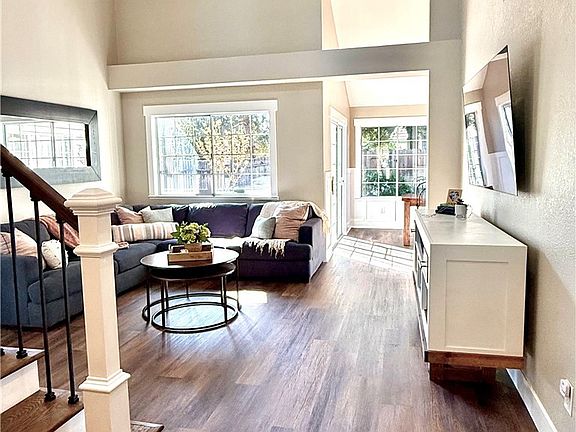 Step through the front door and into a sun-drenched living area featuring soaring ceilings, and expansive windows. The spacious living and dining areas flow effortlessly into the kitchen — ideal for both lively gatherings and quiet house dinners.