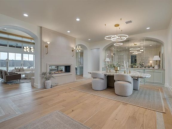 Modern Tudor meets Parisian Elegance… Welcome to this timeless 4-bedroom (plus study or optional 5th bedroom), 5-bath masterpiece nestled in a prestigious gated neighborhood, Manors of Annecy. Blending classic Tudor charm with sophisticated modern finishes, this home offers both style and function for today’s discerning buyer. Step inside to discover a thoughtfully designed open floor plan featuring a striking double-sided gas fireplace with Castone surround, rich French oak flooring, and exquisite finishes & details throughout. The gourmet kitchen is a chef’s dream, complete with gorgeous custom cabinetry, Taj Mahal quartzite, fluted quartzite drawer fronts, GE Monogram appliances, a 60-inch built-in refrigerator, double ovens, walk-in butlers pantry also includes wine fridge. Enjoy the Master bedroom with its cozy gas fireplace, bookcases & double shower heads master shower, separate make up vanity & soaking tub. Retreat to the private backyard oasis showcasing a heated pool with sundeck and ledge stone wall fountains, built-in fire pit, grill area and plenty of space to relax or entertain. Inside, comfort meets efficiency with foam insulation, a full energy-efficient package, tankless circulating hot water, and instant hot water access. Additional upgrades include a three-car garage, surround sound, security cameras, and a built-in speaker system for smart connectivity, sprinkler system & more. Located just minutes from the Kilpatrick Turnpike, downtown Edmond, OKC, top-tier shopping, dining, and medical facilities—this home truly offers the best of luxury and convenience for all!