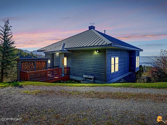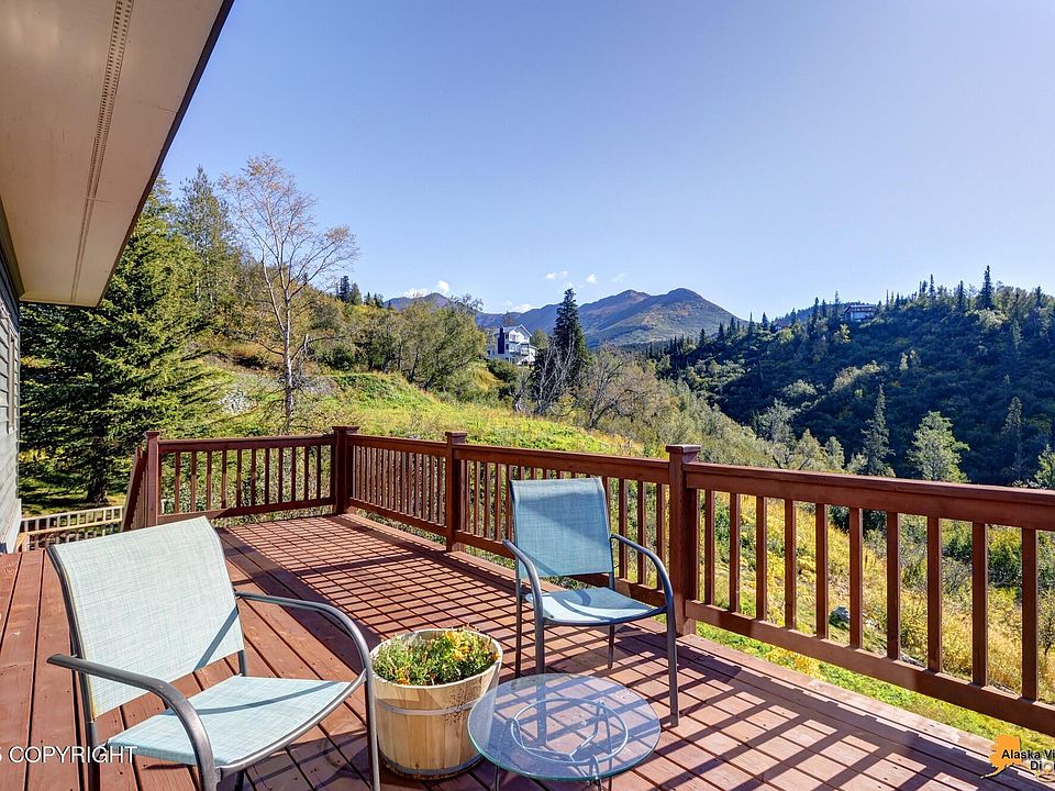 South Anchorage Hillside gem: Stunning home and adjacent 1.25 acre, double lot to preserve your privacy, investment, or to build. With views of Cook Inlet, Sleeping Lady, Chigmit Mtns. Alpenglow sunrises, sunsets, auroras... front-row to Alaska's wild heart, near trails, airport. Turnkey with stained glass and mahogany accents.