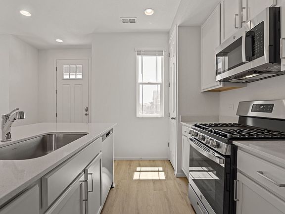 This gorgeous, one year old, 3bd/2ba townhouse comes with LVP and quartz countertops. It is an absolute dream with a pocket park right across the street. The natural light makes the home warm and inviting. There is an attached, 2-car garage and walk-in closets. It is located in the Kinston neighborhood right near Centerra, with easy access to shopping, groceries and retail. It is a great place to make your next home!