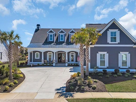 Within this exclusive 55+ gated Grande Dunes Waterside Pointe enclave, a newly completed masterpiece awaits—crafted in 2023 by the acclaimed Carrell Group for those who believe home should be nothing less than extraordinary. Step through grand double doors into a world of elegance. Soaring 11-foot ceilings (12 ft in coffered details) and Italian porcelain tile floors set the stage, while crown molding, recessed lighting, and architectural details whisper of timeless craftsmanship. To one side, a formal dining room glows beneath a boxed tray ceiling with accent lighting—ideal for refined gatherings. Beyond, the living room invites with a modern gas fireplace, custom built-ins, and a coffered ceiling. The gourmet kitchen blends artistry and function—granite and quartz surfaces, dramatic backsplash, soft-close cabinetry, and a custom wood-shelved pantry. A stunning 11-foot island offers abundant seating, complemented by champagne bronze hardware, a boiling water tap, and premium stainless appliances with gas line available. Triple glass sliders open to the Carolina Room, where a stacked-stone gas fireplace creates an inviting year-round retreat. The primary suite is a sanctuary with a tray ceiling, dual custom wardrobes, and a spa-inspired bath featuring quartz vanities, gold fixtures, and a fully tiled shower with intricate accents. Two additional main-level bedrooms each with their own private ensuite baths with floor-to-ceiling tiled showers, plush carpet and tray ceilings. A versatile office/library offers quiet focus or creative inspiration. Upstairs, two more bedrooms, a full bath, and a central flex/media room with charming dormers provide comfort and flexibility. Throughout, thoughtful luxuries abound—central vacuum system, HALO water filtration, Rinnai tankless hot water, irrigation, whole-house audio, security system, and plantation shutters. The oversized three-car garage features epoxy flooring, overhead storage, and utility sink. Outdoor living is equally refined with a paver patio, built-in grill, and lush landscaping on a 0.29-acre lot. Residents of Waterside Pointe enjoy an unparalleled lifestyle with exclusive access to two premier Amenity Centers. The private Ocean Club, featuring Ocean Front dining, a resort-style pool, and gated car and golf cart parking. In addition, membership to the Del Webb Amenity Center along the Intracoastal Waterway, offering Indoor and Outdoor Pools, Bocce Ball, Picklebal & Tennis courts, scenic walking paths Fire Pit, organized events and clubs and beautifully designed gathering spaces- the perfect blend of coastal luxury and active lifestyle living. This is more than a residence—it’s a lifestyle of premier luxury, leisure, and coastal beauty in one of Myrtle Beach’s most coveted communities. Schedule your private tour today.