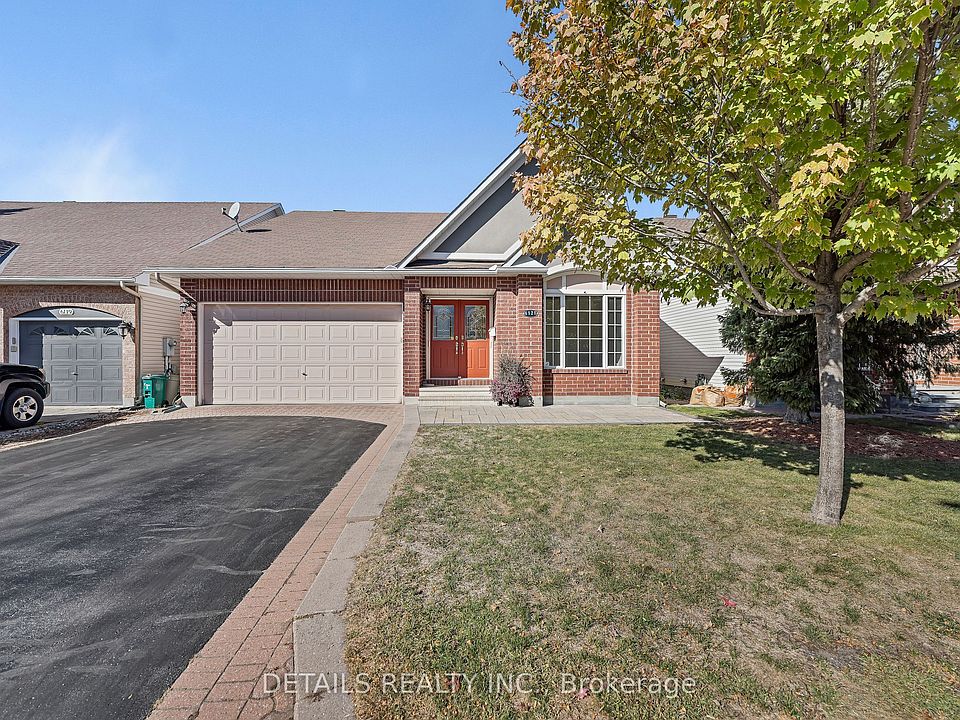 Welcome to The Bungalows of Chapel Hill! This lovingly maintained 2+1 bedroom, 3 bathroom bungalow perfectly combines comfort, style, and convenience in one of Ottawa's most desirable communities. Step inside to a bright, open-concept living and dining area featuring hardwood floors, soaring 13-ft cathedral ceilings, and a cozy gas fireplace ideal for relaxing with family or entertaining guests. The sun-filled eat-in kitchen has been renovated with granite countertops, new backsplash, quality appliances, and ample cabinetry, providing both beauty and functionality. Patio doors open to a beautifully landscaped, fenced backyard with a large 12 x 19 deck, perfect for enjoying morning coffee or hosting summer BBQs. The spacious primary bedroom impresses with 13-ft ceilings, a walk-in closet, and a recently updated 4-piece ensuite, offering a private retreat. A versatile second bedroom or den, a full bath, and main-level laundry with inside access to the double garage complete the main floor, making everyday living effortless and convenient. The fully finished lower level significantly expands the homes living space, featuring a large recreation room, a third bedroom, a full bath, a walk-in closet, and abundant storage perfect for guests, hobbies, a home gym, or additional family space. The entire home has been recently painted, giving it a fresh, move-in-ready feel. Situated in a quiet, friendly neighbourhood surrounded by parks and walking paths, yet just minutes from Innes Road shopping, restaurants, theatres, and OC Transpo routes, this home offers both lifestyle and convenience. Meticulously cared for and truly move-in ready, this bungalow represents an outstanding opportunity to enjoy easy, connected living in Chapel Hill, combining modern updates, spacious interiors, and a serene, well-connected community.