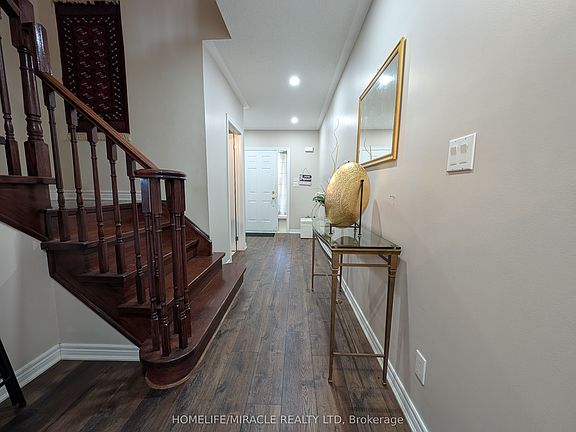Welcome to this stunning home located in Mississauga's East Credit neighborhood. A spacious and inviting front entrance leads to an open-concept layout perfect for entertaining. The great room features hardwood flooring throughout and a cozy gas fireplace. The main floor also includes a convenient laundry room with direct access to the garage. Hardwood stairs lead to the second floor, where you'll find the master bedroom, which boasts a walk-in closet and an en-suite with both a stand-up shower and an oval soaking tub. This home is situated in a highly sought-after community, offering easy access to top-rated schools. You're also just a short drive from Heartland Town Centre, bringing with it a wide variety of shops, restaurants, and big-box stores. For commuters, the home is ideally located near Highway 401, making travel and commuting easy.