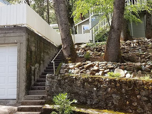 IMMACULATE CRAFTSMAN STYLE situated in the trees. Home updated in 2014 including all new energy efficient windows, paint inside and out and new retaining wall behind home. Large front porch, Craftsman 42' entry door, Nice 9' ceilings, remodeled kitchen, Laminate flooring, Claw foot tub in good size bathroom with tile flooring, Large Utility Rm, Monitor heating, plus wood stove with tile surround in living room. Low maintenance terraced sloped lot with landscaped side yard with outdoor seating area. Modern metal roof, Concrete & Wood stairs(porch) to front door in excellent condition. Energy efficient custom cellular blinds on windows throughout the house. Basement is easily accessible and in good condition for storage.