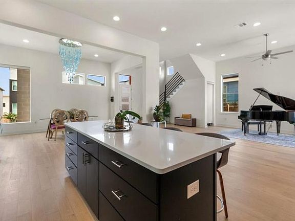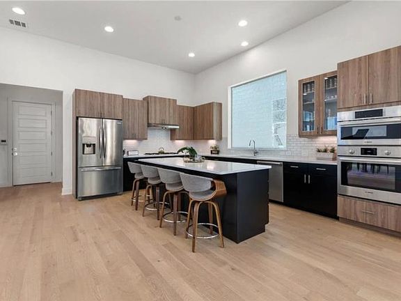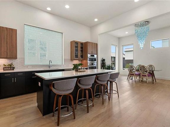 Modern Architecture home located in East Austin! Built in 2018, this home features an open floor plan, high ceilings, TONS of natural light, wood floors, Bosch stainless steel appliances, 5 burner gas cooktop, and sleek finishes through out. Upstairs you'll find 3 bedrooms, conveniently placed laundry room and a loft that can be utilized as a media/game room or office. Primary bedroom includes walk-in closest, triple sliders off the balcony with a view for miles and a beautiful spacious bathroom - divided dual vanities, plenty of counter space, walk-in shower with dual shower heads and a soak-in bath tub. Backyard oasis includes low maintenance yard, covered patio and access to the back driveway. Upgrades include Custom electronic shades downstairs + in master bedroom and electric car outlet in garage!