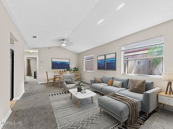 You really can own a home under $210,000 and in time to decorate for Christmas ! This home will pass all insurance requirements, It is Brick, Move in Ready, 3 Bedrooms, 2 Bath in a small Community. All of the big items are done for you! Receive 1% of your loan closing costs w/our preferred Lender. Come see! NEW....Carpeting, Interior Paint & Water heater. Roof 2020, Plumbing and Electrical are good. The Layout is good with 1 BR up front, Master and BR 3 towards back of the home. Nice, large living spaces in the middle which provides a lot of space for additional dining area and family room. (See virtual photos). Nice Kitchen with large opening so you do not miss the family activities. Look! Washer and Dryer stay with acceptable offer. Home has low maintenance yard. Located in a cul-de-sac. A stone's throw to Lane Ave and Normandy Blvd and expressway and more.