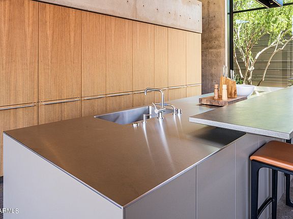 From what began as an appeal and vision to create the most alluring home in Arizona's highly sought-after Paradise Valley, Dancing Light came into being, a triumph in contemporary residential architecture that truly reflects the spirit of its natural surroundings. A sprawling 2.8 acres contains two stunning residences, with the main house and guest house consisting of 3 bedrooms and 3 1/2 baths, and 1 bedroom and 1 bath, respectively. Prepare for moments of awe in this Kendle Design, Architect/Desert Star Construction/David Michael Miller, Interiors-designed 6,198 square-foot masterpiece replete with artfully functional details that extends naturally to the outdoors. Camelback Mountain is silently poised nearby, as if offering its blessing to a desert compound made up of the area's natural substances and the highest quality building materials. Enter through doors of frosted glass and be at once greeted by a sophisticated ambiance - a desert courtyard surrounded by a comfortable, open living environment with views of the outdoors from almost any vantage point. Floor-to-ceiling sliding glass walls open up the great room into the exterior patio, eventually interrupted by soft wood panels and grey adobe-textured walls that frame the living spaces such as the ultra-modern kitchen, dining area, and wide hallways. Light streams in from well-placed windows, either at the floor, near the ceiling, or as accent walls, creating various nuanced shades in the spaces decorated by muted greys and light browns, with the occasional pops of color. The strategic placement of the pool affords cool breezes to the inside, and the roof appears as if it's rising up to meet the mountains. State-of-the-art features like Gaggenau appliances, Vola kitchen and bath fixtures, and custom woodwork fill the rooms, adding to the home's understated modern elegance. Powered by Savant technology, the entire estate can easily be controlled on-site or from a distance, whether it's maintaining the Gbtwo-meticulously designed landscape or engaging the home's security and energy systems. A stunning portrayal of domestic art, it is no wonder that the compound has caught the attention and acclaim of experts in architecture and design worldwide, being showcased in over 100 online design websites, mentioned in industry magazines and published books, and winning multiple home-building and design awards. With equally stunning views of the landscape, this home plus guest house is the perfect setting in entertainment or retreat for the most discerning of tastes. 2022-01-20