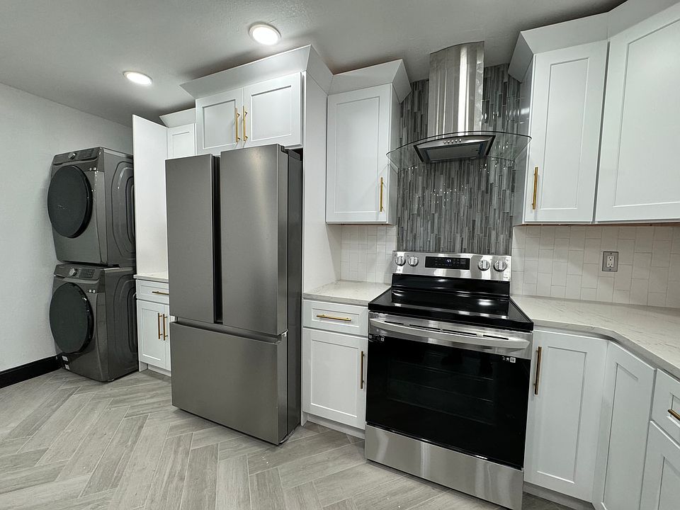 Fully remodeled gorgeous modern unit, open floor plan, recently painted, tile floor throughout, modern recessed lighting, ceiling fans, new cabinets, granite countertops, central air & heat, with new refrigerator, microwave, dishwasher, glass top stove, stacked Samsung washer and dryer, all appliances are just about 1 year old. Comes with two (2) parking spaces. Close proximity to shopping and public transport. Come live in this completely redone unit, it is a definite must-see! Will be willing to work with Section 8, approved Housing Voucher, or VA.