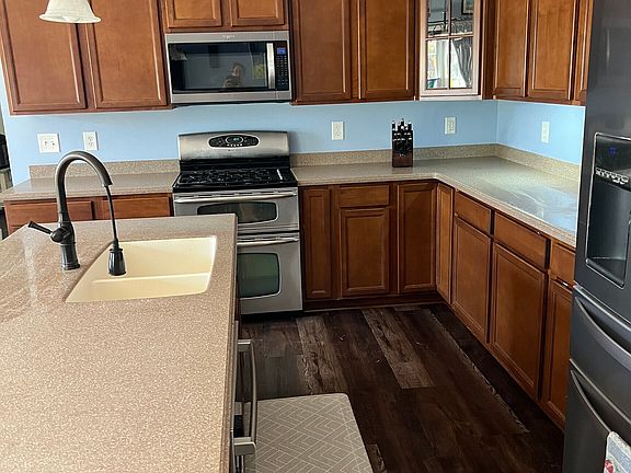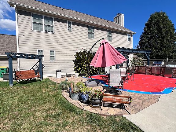 Welcome to this stunning Estridge home, offering over 3,500 sq. ft. of beautifully designed living space, including a spacious finished lower level with 9' ceilings and a full bath rough-in. Perfect for entertaining and everyday living, the main level features durable vinyl flooring, a large kitchen island, breakfast bar with sink, and stylish pendant lighting. The open-concept design flows effortlessly into a family foyer complete with built-in bench, cubbies, and a convenient PDA station. Step outside into your private Backyard Oasis, showcasing a large in-ground pool with diving board, an expansive sun deck, and a custom outdoor kitchen under a charming pergola and privacy with vinyl fencing- ideal for summer gatherings and relaxation. Unwind in the luxurious master bath featuring a corner garden tub, oversized walk-in shower, double bowl vanity, and a spacious walk-in closet. Enjoy peaceful evenings on the covered front porch with a classic porch swing. Additional highlights include a 3-car garage with openers and thoughtful details throughout. This is more than a home - it's a lifestyle.