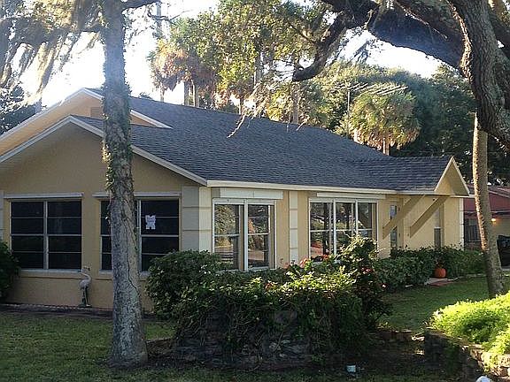 177' Direct Waterfront lot on Rose Bay with 120' dockspace. Grand old oaks and palm trees grace the property. Lots of large picture windows throughout with views of the bay. Sizable glassed in Florida room with vaulted, knotty cedar beamed ceiling, home has room to easily add a 3rd bedroom. Kitchen is exquisitely and professionally upgraded with 42 solid maple cabinets and granite countertops. Living room/dining area combo with vaulted ceiling is open and looks out through large picture windows to Rose Bay. The entire home has 20 porcelain tiles that were imported from Spain and installed on the diagonal, decorative door and floor moldings and abundant closets throughout. Large spacious bedrooms with 2 full bathrooms including granite countertops, oversized tiled shower and whirl