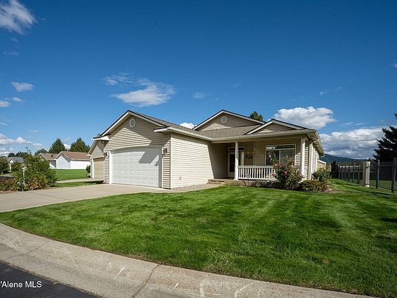 Welcome to Parkside in CDA Place, a small highly desired gated community just steps away from Bluegrass Park, offering both comfort and convenience. This beautiful maintained single-level home features 2 bedrooms, 2 bathrooms, and 1388 square feet of living space designed for easy living. The bright open floor plan includes a spacious living area, a well-appointed kitchen, and a dining perfect for entertaining. The fully finished, sheet rocked, and painted garage provides extra function and style, offering clean storage or hobby space. Step outside under your covered patio and enjoy amazing views of Canfield Mountain right from your own backyard. With its prime location you'll have access to trails, parks, and all the amenities that make this neighborhood so sought after.