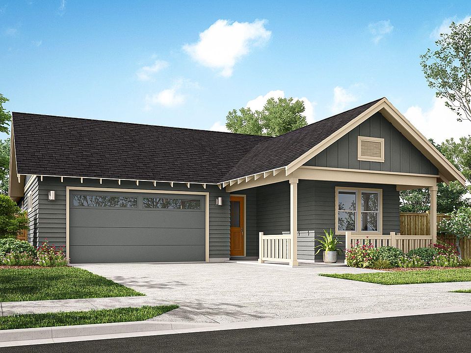 This beautiful single level home offers easy living with style and no HOA fees. Located in Countryside, this light and bright single-level home features a spacious kitchen and dining area, open great room with a modern gas fireplace, and a private primary suite plus two additional bedrooms. The kitchen boasts sleek shaker style cabinets, solid-surface counters, tile backsplash, quartz island, and stainless steel appliances. Durable laminate flooring runs throughout the main living areas, baths, and utility room. The primary suite includes a dual vanity, tile shower, and walk-in closet. Great room slider opens to a covered patio for easy outdoor living. A ductless system provides year-round heating and cooling. Upgrades include full landscaping, and cedar fencing.