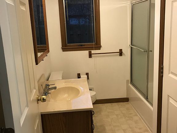 Brick duplex, clean, approximately 1100 square feet, 2 bedroom, 1 bath, large living room with sliding glass door to wood deck patio, air conditioning, includes kitchen appliances (dishwasher, garbage disposal, refrigerator, stove), full basement, lots of storage, extra- large garage with garage opener, vertical and horizontal window blinds, quiet neighborhood, no neighbors behind duplex, one month rent security deposit, 1-year lease, no pets, and non-smokers. Grass cutting & snow plowing included.