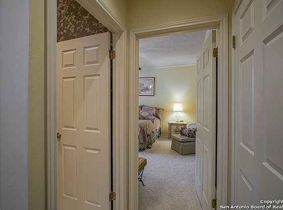 Welcome Home! Elegance awaits you in this gorgeous and stunning Windcrest home! It is immaculate and has been meticulously maintained. Nestled on a quiet and peaceful culdesac, half a block from pond. This one story beauty boasts a bright open floor plan with soaring ceilings, exquisite kitchen with custom cabinets and plenty of counter space. An abundance of windows provide plenty of natural light! Beautiful hardwood floors at entrance, living room and dining room. Private luxurious master retreat featuring elegant his and hers vanities, separate walk-in closets, and inviting Jacuzzi tub. Room off master can be second living area, office/study, nursery, etc. 2nd master has full bath with double vanity. 3rd bedroom can be guest suite with access to it's own full bath. Beautiful window shutters throughout. Floor to ceiling fireplace in living room. Home is energy efficient with 2 HVAC Units and 2 Water Heaters. Newer roof 2018. Convenient to BAMC, RAFB, IKEA, IH35, 410, 1604 and Downtown San Antonio.