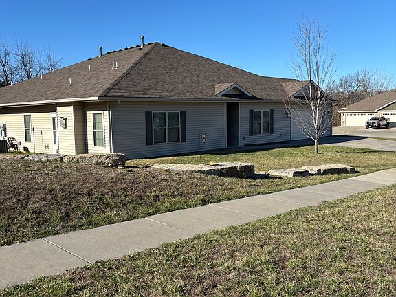 Washburn Rural area, 1,910 sq ft large open floor plan, all on one level, with its own driveway and attached 2 car garage. Large kitchen and dining room combined which has a walk in pantry that serves as a shelter room should it be needed. Has a laundry room with washer/dryer hook ups. Large living room with a gas fireplace. Master bedroom has its own bath with 2 sinks, large soaking tub and separate shower; with large walk in closet. Bedrooms are separate of one another with living area in the middle. Other 2 bedrooms have nice sized closets. Nice quiet neighborhood within walking distance of Lauren's Bay / Blue Heron Bay and Park.