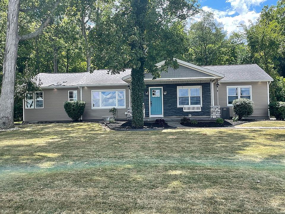 Welcome to 6123 State Route 224 Ottawa, Ohio. This one story, 2000 square foot home was built in 1954. It offers a 1500 square foot semi-finished basement and a two and a half car attached garage. Three bedroom, two baths and potential basement living space. 100% renovation was completed July, 2016. Updates include new: windows, doors, roof, soffit, facia, tied in seamless gutter's with gutter guard, siding, premium insulation, floor to joist 2" thick spray foamed basement walls, wire, 60 interior recessed lights, 200 amp buried service with outdoor disconnect, PEX pluming, drywall, 3/4" red oak hardwood flooring. KraftMaid Cabinets. Natural gas high efficiency Lennox forced air furnace with central air. City water along with a 200 foot well with septic. Professionally color stamped rear outdoor concrete patio, stamped concrete porch cap with sidewalk and large concrete approach. Pandora - Gilboa Schools
