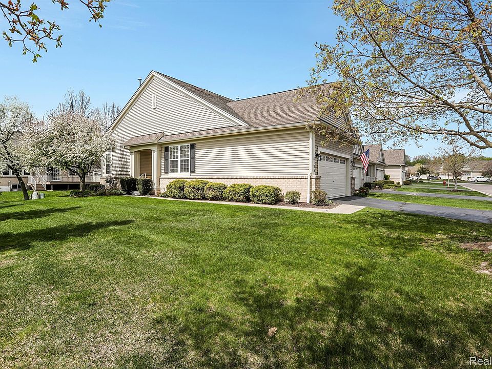 Exceptional Ranch Condo in The Links of Independence! Opportunities in this highly desirable community are rare, and this former builder’s model has all the upgrades. Perfectly situated near the clubhouse with plenty of guest parking, this ranch-style end-unit condo has 2 spacious bedrooms, 3 full baths, and an attached 2-car garage. Inside, you’ll love the open layout highlighted by a bright great room with cathedral ceilings, gas fireplace, and tons of natural light from large windows and stylish transoms above. The kitchen features beautiful oak cabinetry, granite counters, hardwood flooring, and a large island ideal for entertaining. The dining area opens onto your spacious composite deck with awning, perfect for relaxing outdoors. The oversized primary bedroom offers elegant tray ceilings, a luxurious ensuite bath with granite countertops, ceramic tile, walk-in shower, soaking tub, and generous walk-in closets. The second bedroom, a full bathroom, a convenient full-size den, and first-floor laundry complete the main floor. The professionally finished daylight basement provides fantastic extra living and entertaining space, a third full bathroom, plus ample storage and a handy workspace. Enjoy access to the awesome community clubhouse and pool, plus a great location near I-75, downtown Clarkston, and premier golf courses. Meticulously maintained, beautifully finished, and absolutely move-in ready, don’t miss your chance!