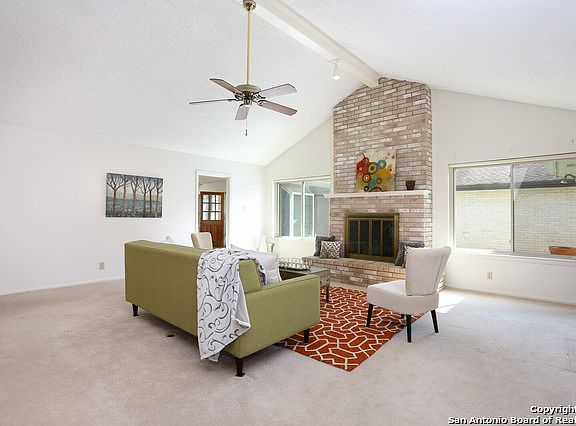 This quality built garden home was designed for privacy and entertaining. Many windows with three skylights make this home bright and airy. Living area with built in book shelves and fireplace is adjacent to dining room with wet bar and sunken atrium. Large master suite overlooking private spa & pool. Kitchen has granite countertops, generous cabinets and a desk. 1/2 bath adjacent to the spacious laundry room with sink and oversized carpeted garage. Private Swimming pool and hot tub in courtyard accessed through master bedroom or kitchen. Garage accessible from back entry street to house. Nicely landscape with minimal yard work. Adjacent to a large 5+ acre green belt with walking trails, park with large water fountain. Convenient location to schools, shopping, airport.
