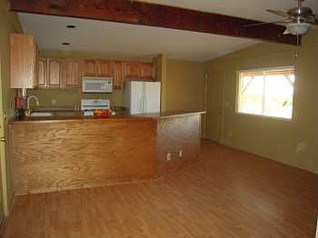 Leave the sounds of the city far behind. Perfect artist High Desert retreat. Charming Log Cabin-styled home, newly remodeled. Three Bedrooms, One Bath. Open Kitchen/Living Room area. New Wood Cabinets and Wood Bar Seating area. New Counters. Slider in Master Bedroom. Current paint colors. Beamed Ceilings. Laminate Wood Floors. Tiled Floors in Hallway and Bath. Guest Bedroom has Carpet. Ceiling Fans. A row of young Pine Trees has been planted in the front of the home. Roomy Two-Car Garage, attached, with Laundry Facilities. Plenty of RV Parking. Horses welcome! Nearest and only neighbor is down the street. Home is situated on a tension-relieving 2.5 Acres complete with soothing desert vistas and relaxing sounds of Nature. Imagine yourself sitting on the Patio, mug of hot coffee in hand, watching the wonderful colors of the rising sun and sunsets in this outback home. Solitude at last! Close to Joshua Tree National Park. Won't last long. Too cute and adorable. Just the place to get away from it all and indulge in inspiration. Bring your sand toys and retreat yourself.
