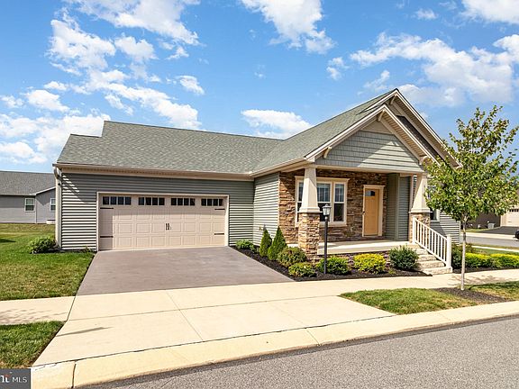 When only the Best Will Do! This ranch home, located on a premium level corner lot in the sought-after Union Station Community, Lower Paxton Township, offers everything you would expect and more. The Navigator model, constructed by award-winning Yingst Homes, is designed with attention to detail and quality throughout. Upon arrival, guests are greeted by a covered front porch leading into a formal entry with custom built-in display shelves. The gourmet kitchen is equipped with custom-painted cabinetry, ceramic tile backsplash, a sweeping center island with breakfast bar, wine rack, stone accents, and breathtaking exotic quartzite countertops. Also included are high-end black stainless-steel appliances, a counter-top gas range with a black stainless-steel exhaust hood. You will also love the walk-in pantry, and access to a screened porch and stone patio via a sliding glass door. The great room features the warmth and comfort of a stone gas fireplace, built-in display shelves, and windows providing abundant natural light. The dining area is highlighted by a chandelier and decorative wood columns, creating an inviting space for gatherings. The primary bedroom suite includes a spacious walk-in closet, ceiling fan, and a bathroom with two high double basin vanities and a step-in shower with seat. Two additional bedrooms on the main floor offer easy access to a shared bathroom with tub and shower combination. The main level also contains a laundry/mud room with utility sink, shelving, and direct access to an oversized two-car garage with an upgraded stained concrete driveway. The lower level encompasses a fourth bedroom with a double-door closet and adjacent full bathroom, a large recreation room with recessed lighting, a sizeable storage area, and a bonus room featuring stone accent walls and recess lighting. This property’s natural light, generous room sizes, and prime location make it a great place to call home. There are two HOA services to choose from: $95 per month or $160 per month which includes lawn care and snow removal. The neighborhood features community walking trails, a pond, dining options and other convenient services. Private tours are available upon request.