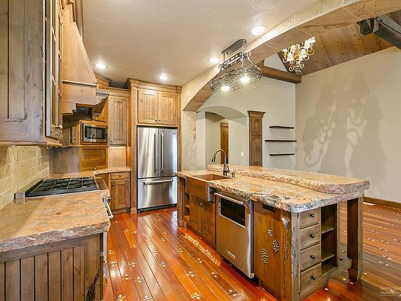 Welcome to Villa Tranquille! This custom chateau-style retreat offers a chef's kitchen, high ceilings, built-in hot tub and must-see outdoor kitchen. From the main house, just across the courtyard is the 1 bd, 1 ba cottage with kitchenette and beautiful stone fireplace. Throughout this home you will find many high-end features such as hand-beveled Brazilian Cherry floors, hand-carved accents all the woodwork, and travertine floors and archways. Park-like backyard backs to the gorge and offers full mtn views